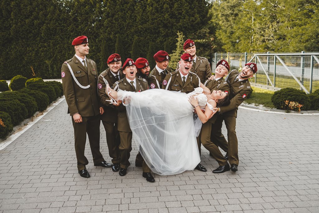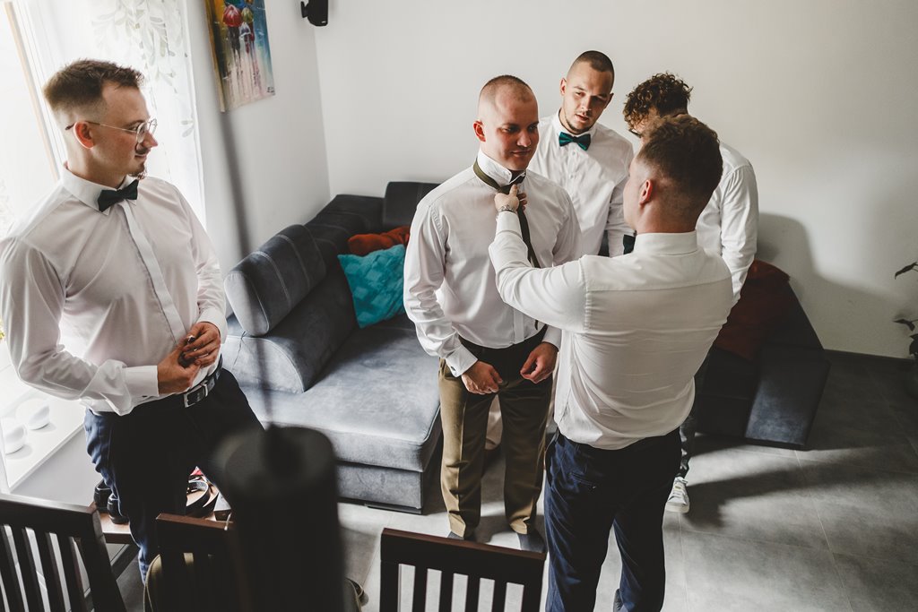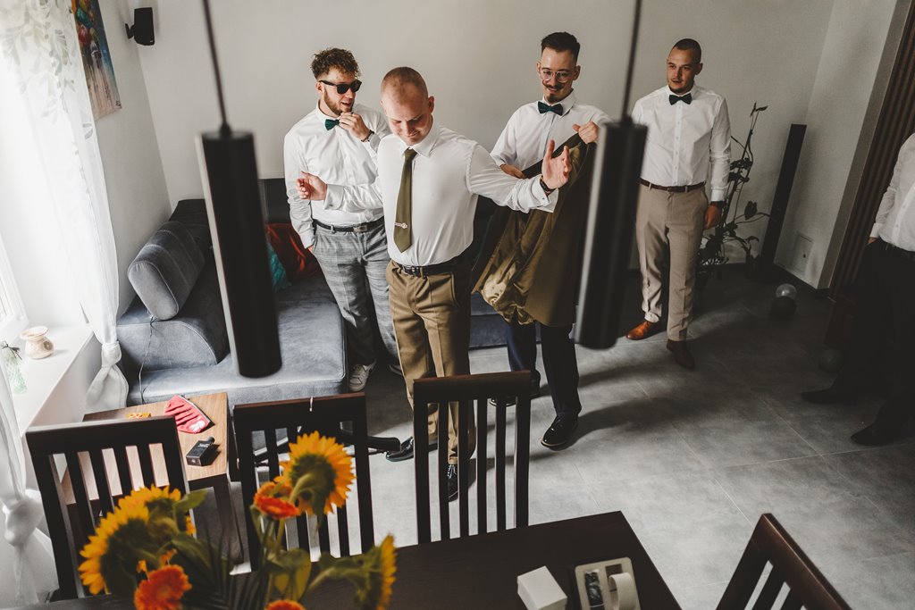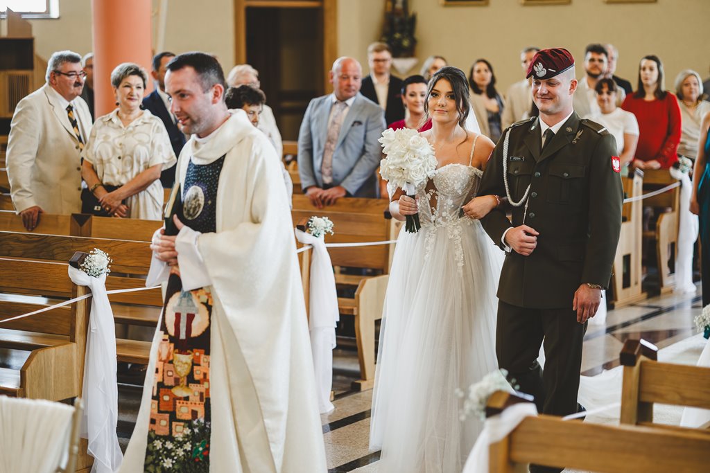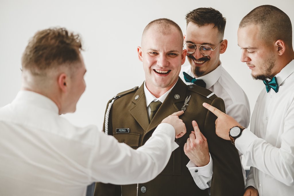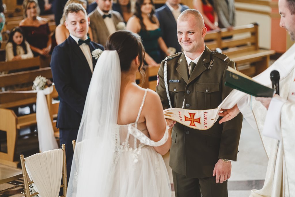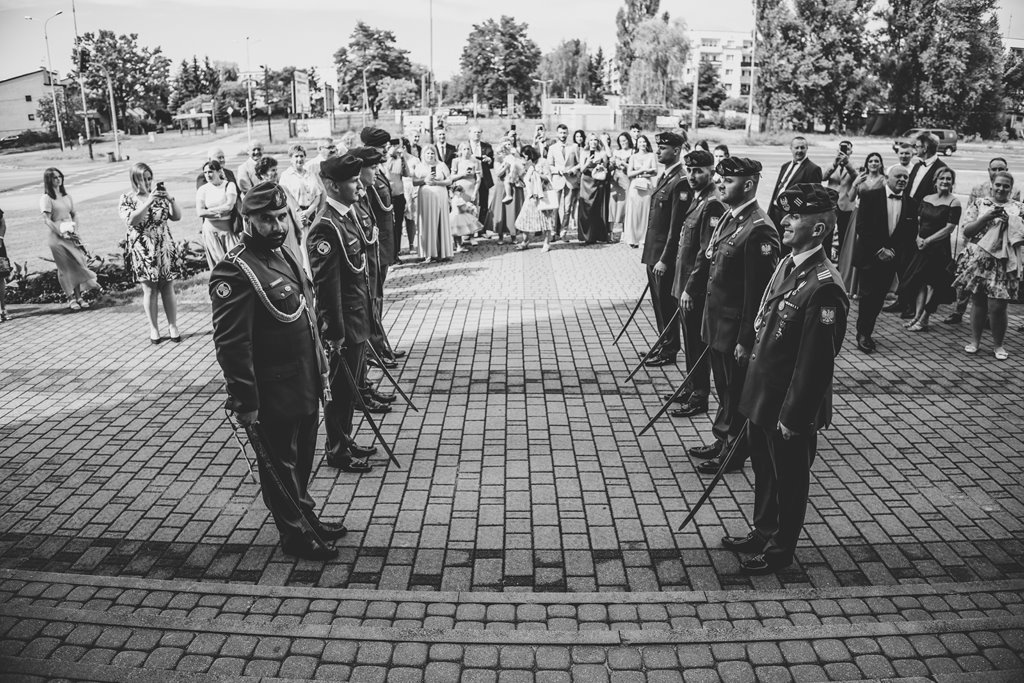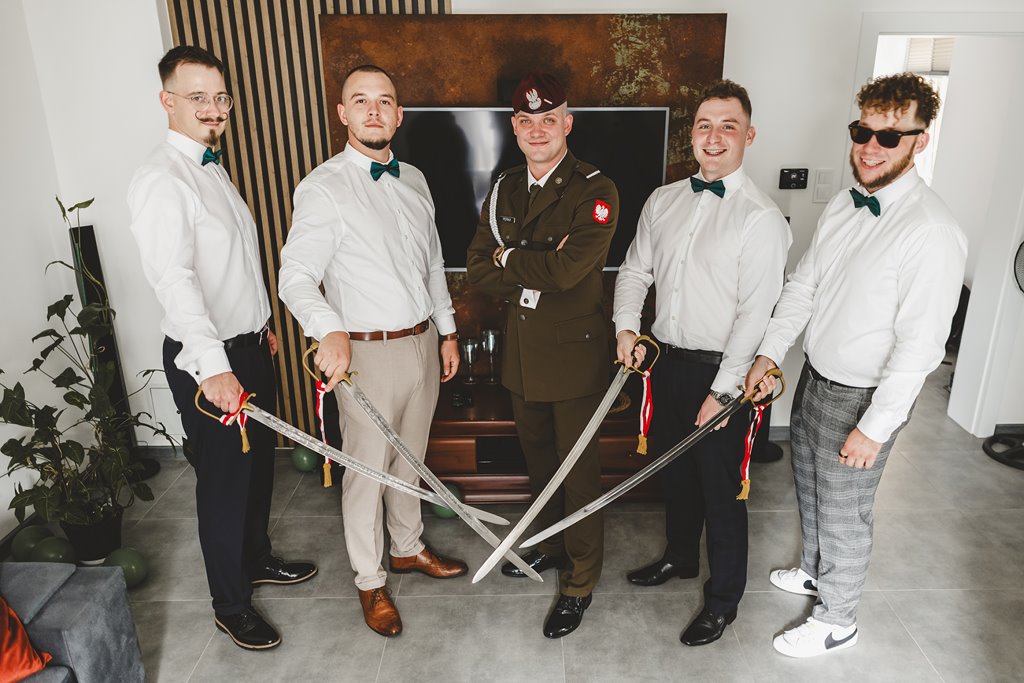 Przygotowania zaczęły się w rodzinnym domu Patryka, w gronie najbliższych przyjaciół i towarzyszy ze służby wojskowej. Lśniące szable, mundury i wojskowa dyscyplina przeplatały się tu z luzem i dobrym humorem. Patryk ubierał swój mundur wśród kolegów, którzy pomagali mu dopiąć każdy detal. Chwilę później ruszył pięknym mustangiem po Aleksandrę.