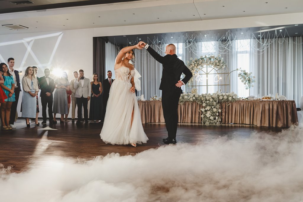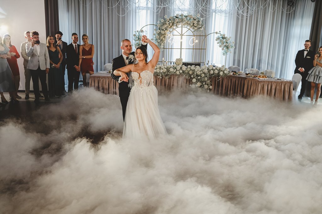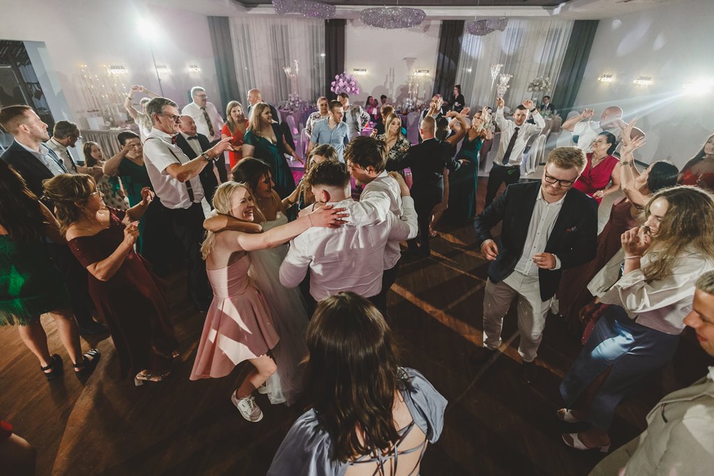 Wesele w sali Cristal to już inna historia – żywiołowa, pełna energii i świetnej zabawy. Cristal, jedno z najbardziej eleganckich miejsc w okolicach Łodzi, stworzył idealną scenę na wieczór, który wyglądał jak wyjęty z bajkowego balu. Diamentowa sala, światła, przestrzeń i cały klimat sprawiły, że Aleksandra i Patryk mogli poczuć się jak główni bohaterowie wyjątkowej historii. Goście bawili się szalenie dobrze, parkiet praktycznie się nie zatrzymywał, a atmosfera niosła wszystkich do samego końca.